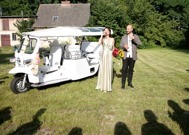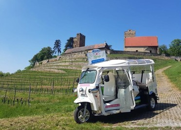 Gerne können Sie Ihr eigenes Werbeschild auf den TukTuks anbringen. www.frank-werbung.de